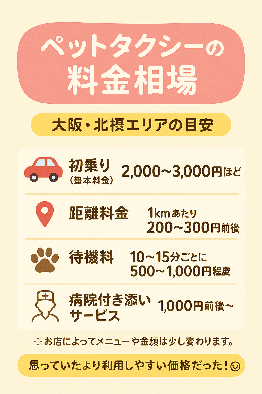 🎀② ペットタクシーの料金相場【大阪・北摂エリア】
